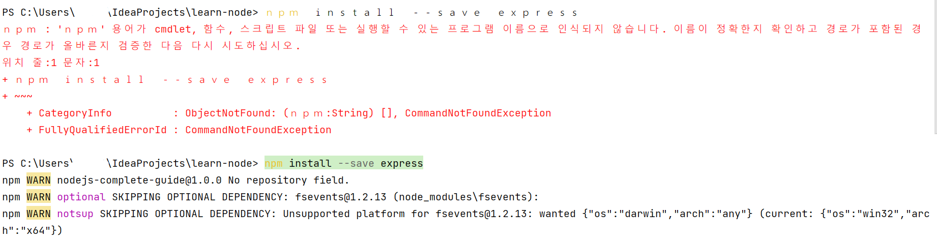 아래와 같이 터미널에서 글자가 띄어쓰기 된 채로 출력되는 경우 Alt + = 단축키(알트와 =)를 사용하여 해결할 수 있습니다.