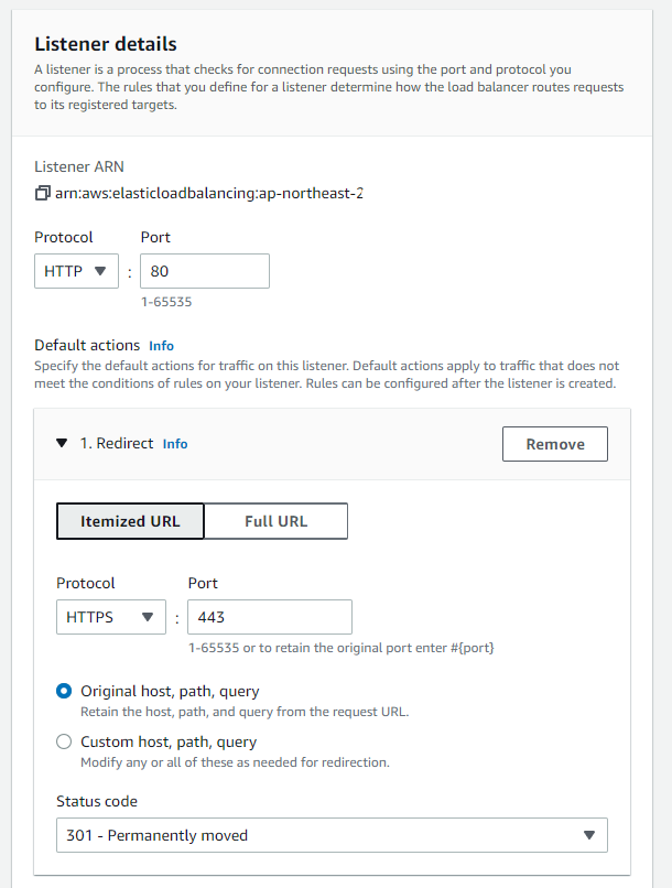 2. (HTTP 리스너에서 설정된 규칙을 통해) HTTPS로 리디렉션