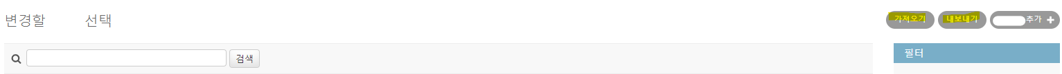 4. 모듈을 추가한 어드민에서 가져오기, 내보내기 버튼 생성여부 확인 후 기능 사용