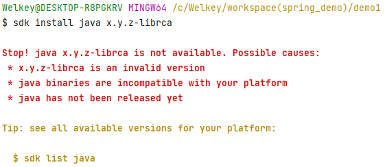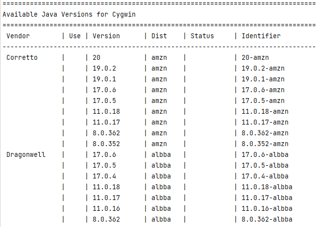 설치 및 버전확인까지 완료하였으나 막상 사용하려니 현재 인스톨 되어있는 자바 버전을 가지고 올 수가 없고, 내가 원하는 벤더의 자바 버전을 설치할 수 없다는 한계를 발견하게 되었다. 나는 스프링에서 권장하는 JDK버전인 BellSoft Liberica JDK version 17을 설치하고자 하였는데 $ sdk list java 명령어를 입력하여 확인한 설치 가능 버전들은 아래 스크린샷과 같았던 것.