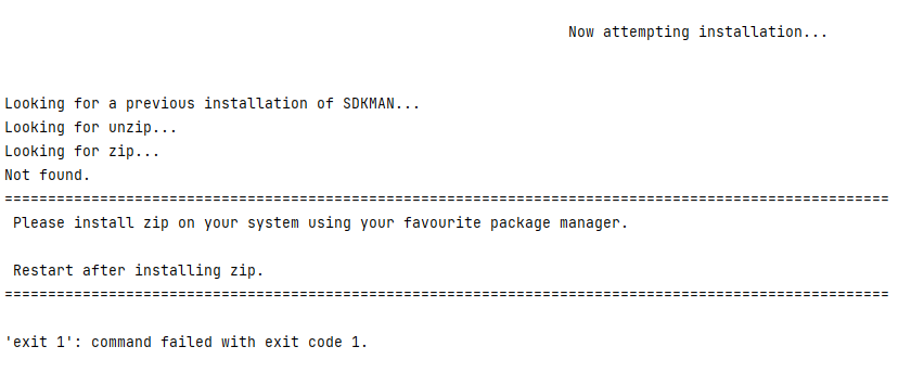 2-1. zip이 없어 아래와 같은 에러 메시지가 나오는 경우 이 해결법을 참조하여 zip을 설치