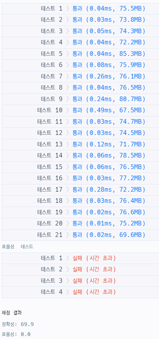 효율성 통과못한 코드(DFS, 69.9점)